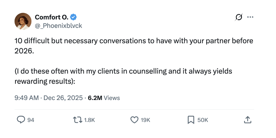 I came across this amazing thread on X that shares 10 difficult but necessary conversations you need to have with your partner before the new year. And it’s not too late—make time for these questions now.