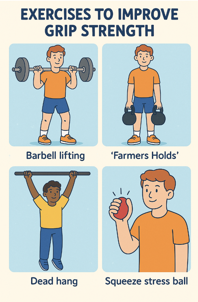 Here are some exercises you can focus on to improve grip strength. Some individuals may require assistance, so always use discretion before performing.