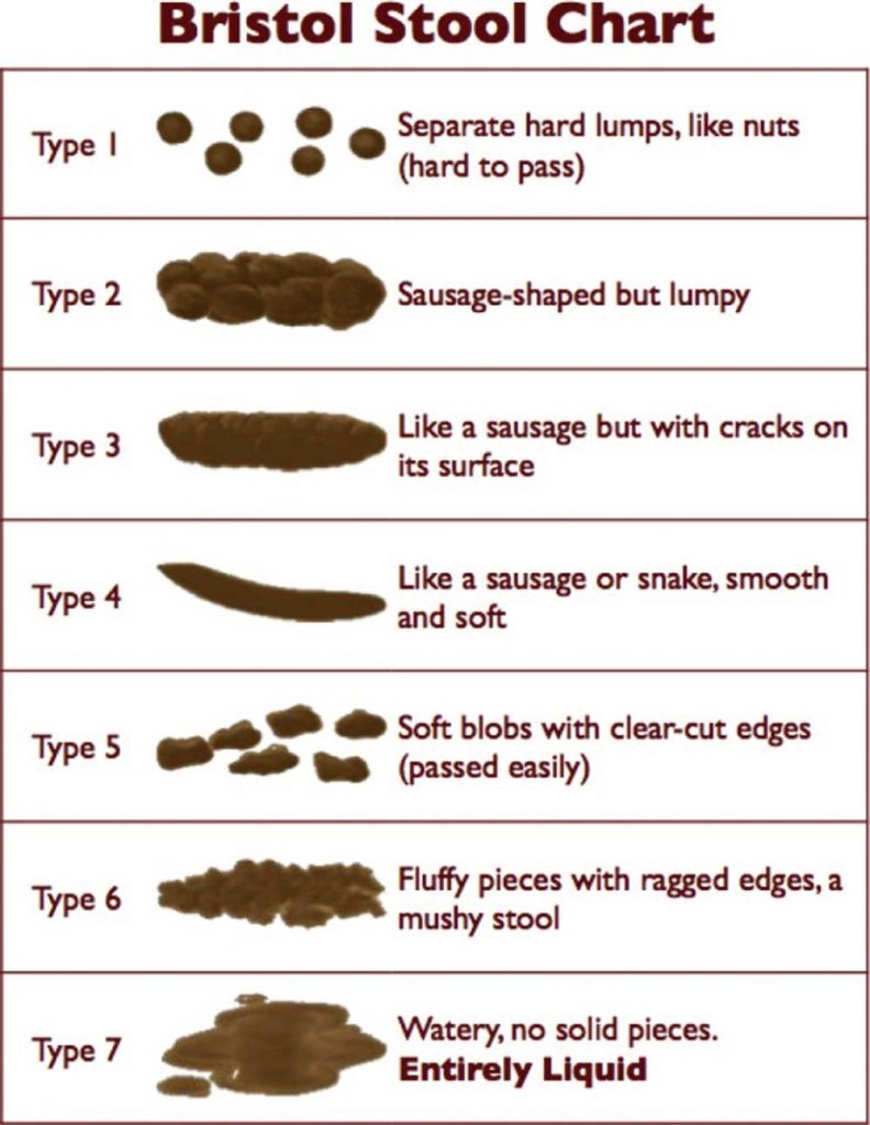 How do you know if your stool is abnormal if you don’t exactly know what normal looks like? There’s actually an official guide called the Bristol Stool Chart (below) you can use to determine if your stool is considered “normal” or not.