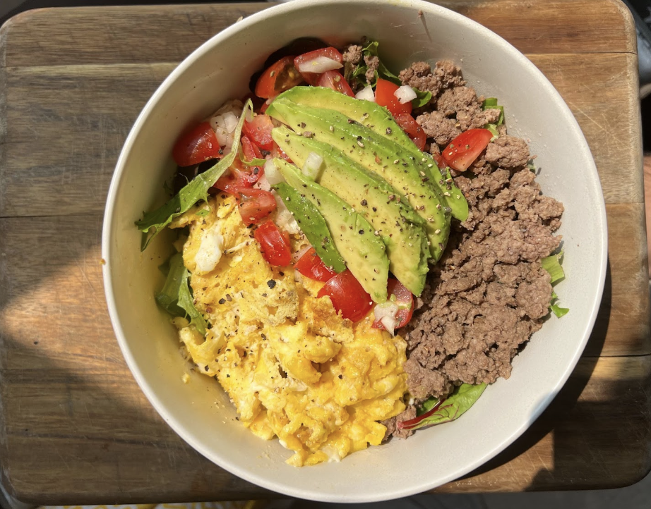 This is my co-writer, Taylor’s (@foodhappywithtaylor) favorite high-protein breakfast to whip up after an intense HIIT or hot yoga workout before starting her workday.
