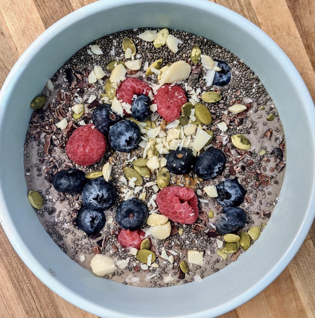 But I’m super conscious of the ingredients I use to make sure they don’t spike my blood sugar. Instead of using high-glycemic fruits like pineapple, mangoes, and bananas, I use low-glycemic fruits like berries.